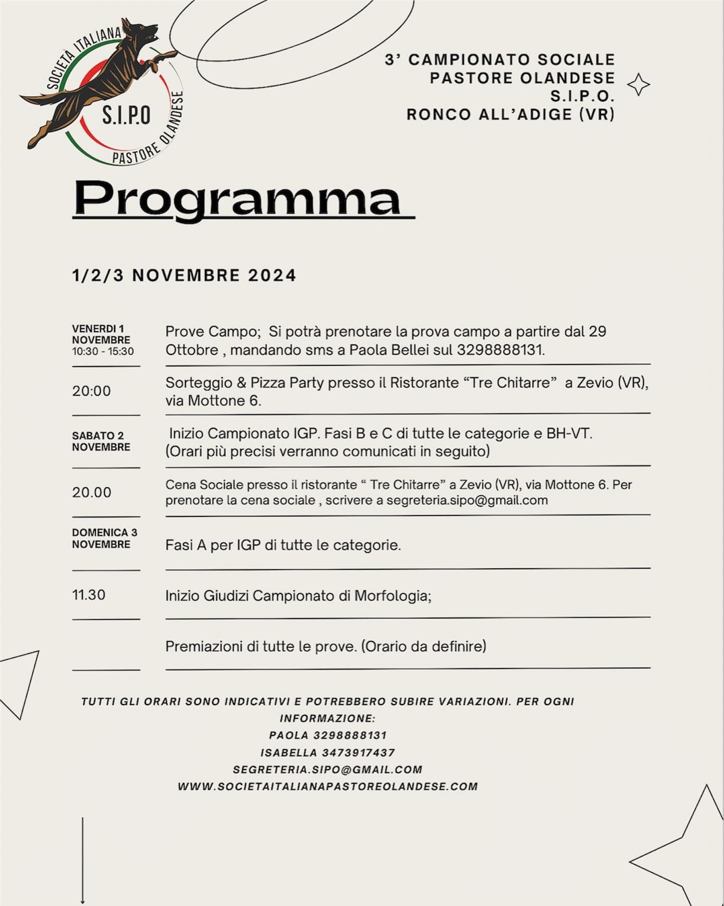 1/2/3 Novembre 2024 a Ronco All’Adige (VR) presso il Campo Sportivo in via Brigata Paracadutisti Folgore 37055 Albaro (VR).